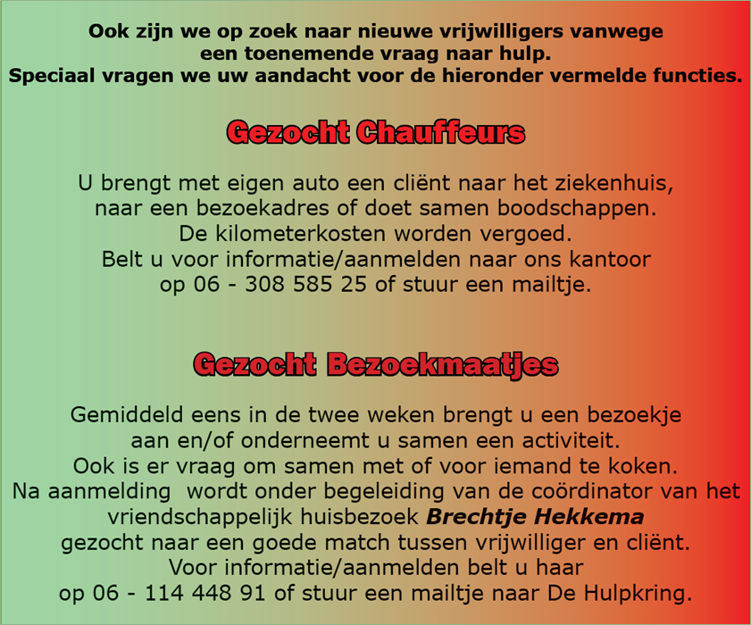DE VRAAGBAAK VOOR VRIJWILLIGE HULP